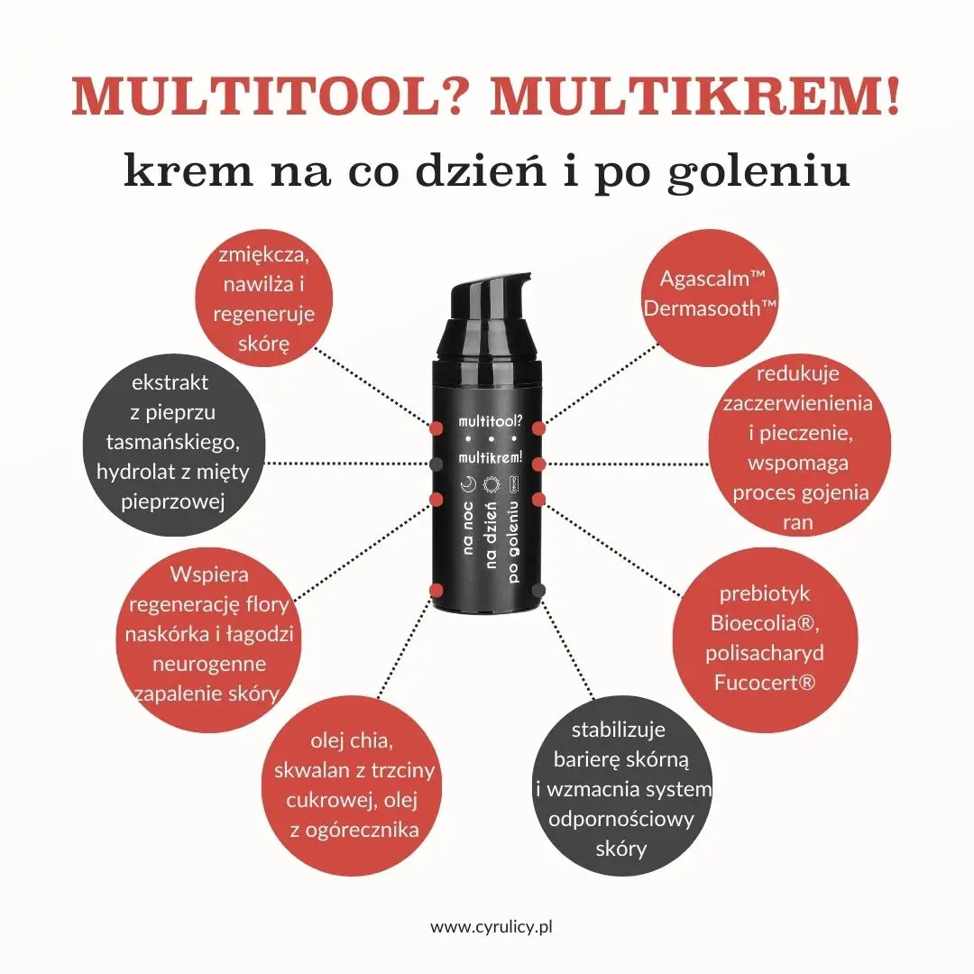 W tym celu może się sprawdzić nasz łagodząct krem do twarzy i balsam po goleniu w jednym Multitool? Multikrem!, który koi i nawilża skórę, a także łagodzi podrażnienia, świąd czy pieczenie i zaczerwienienie skóry. Warto szybko reagowanie na pierwsze objawy podrażnienia zamiast „przeczekiwania”. Wielu mężczyzn zauważa, że kojący krem nawilżający na podrażnienia znacząco poprawia tolerancję skóry przy terapii minoksydylem i zmniejsza ryzyko przerwania kuracji.